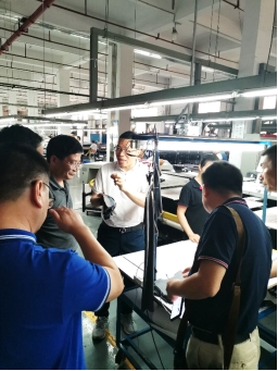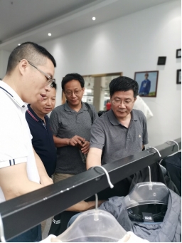 会后,刘总向易兵校长一行展示了企业各种各样的服装产品,并详细介绍了一些服装的特色、功能、代工贴牌服装的价格,并通过讲解贴牌产品的附加值来说明服装品牌的重要性。然后,刘总引领易兵校长一行参观了印染车间、实验室、调度控制室、智能化车缝车间和熨烫车间。其间,双方对企业的生产技术、设备、产品、管理等方面做了进一步的交流,共同希望校企双方能够深入开展产学研合作,帮助企业解决难题。