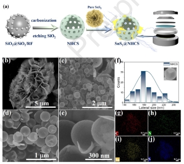 图1SnS2@NHCS复合材料的合成与形貌表征