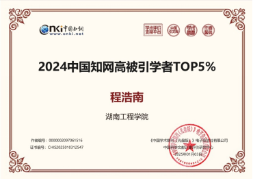 近日,中国知网中国科学文献计量评价研究中心(简称“知网评价中心”)基于中国知网收录的国内学术期刊论文和会议论文,2024年首次开展学者学术影响力客观评价,遴选了“2024中国知网高被引学者”名单,我院程浩南副教授成功入选。