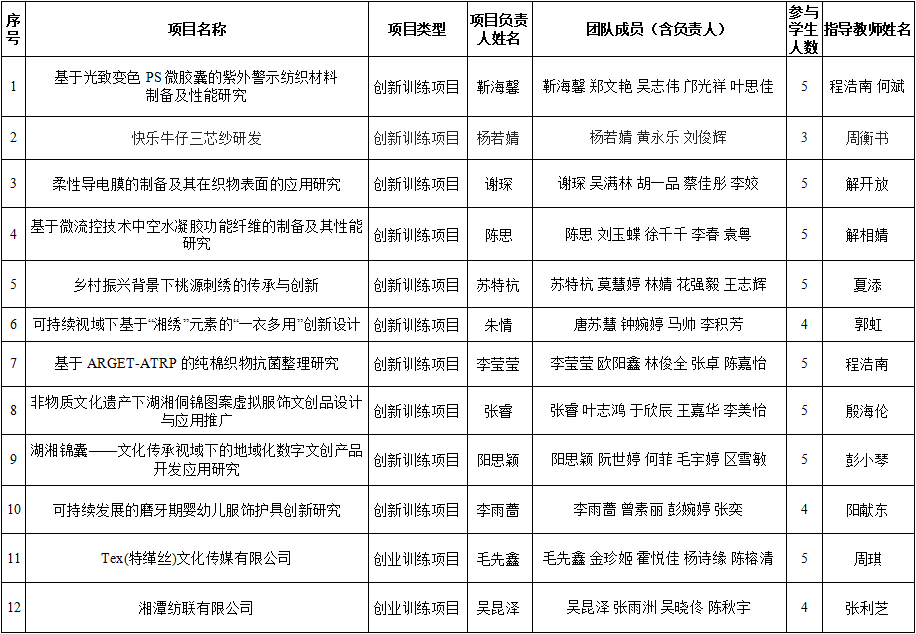 附表:2023年纺织服装学院大学生创新创业训练计划项目参加校赛名单