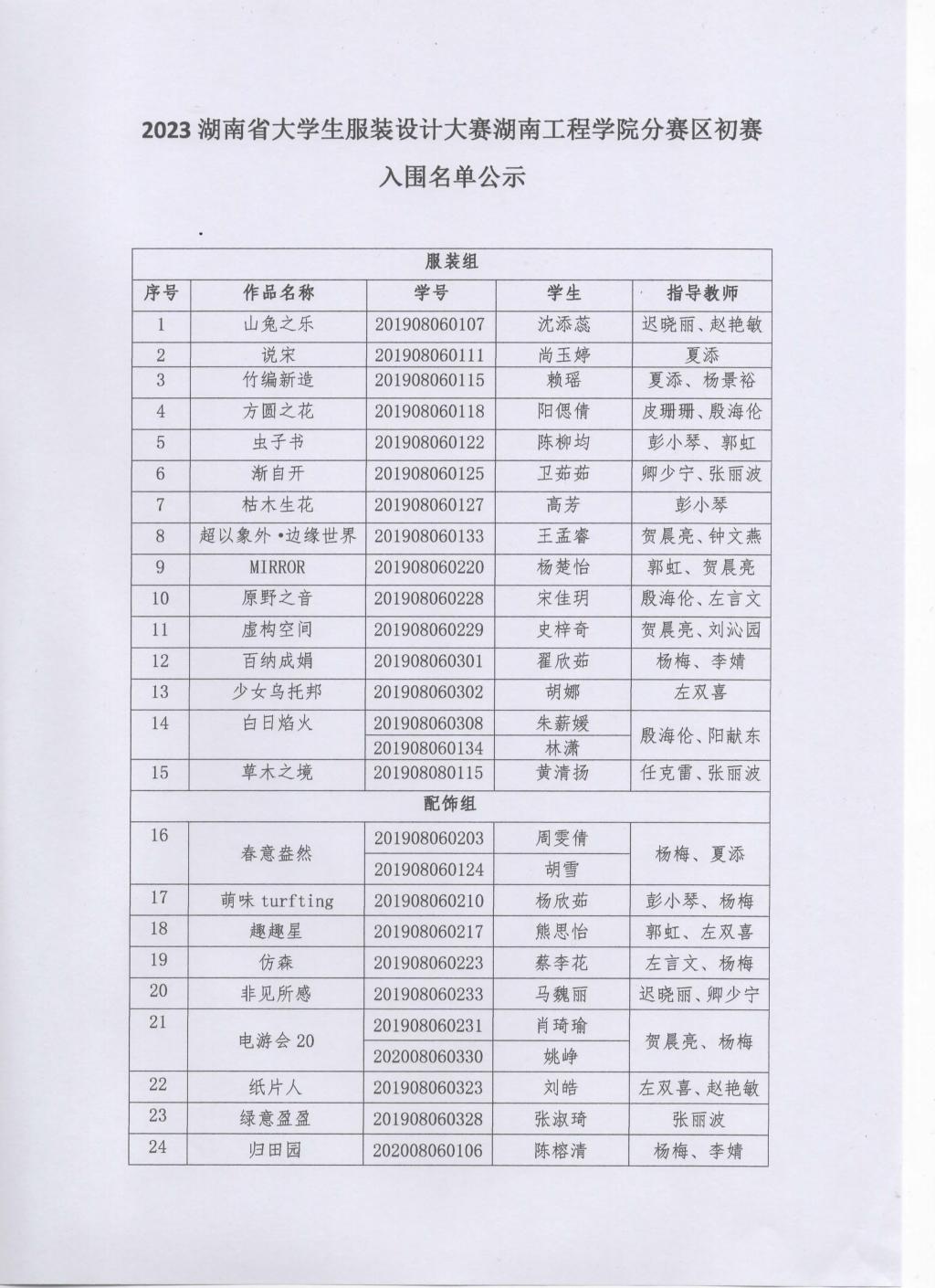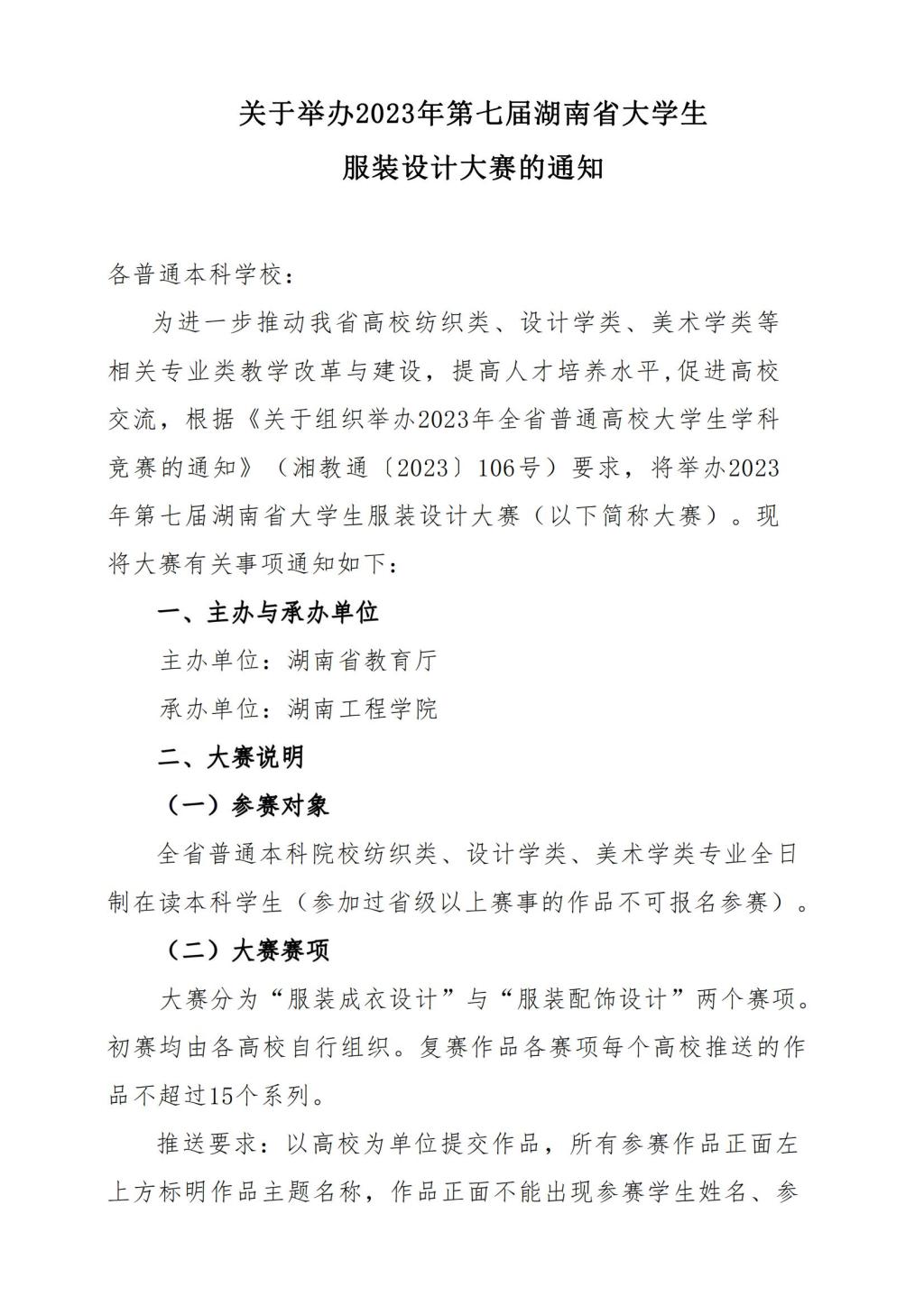 2023年第七届湖南省大学生服装设计大赛通知暨伟德国际victor1946分赛区初赛入围名单公示