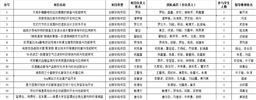 附表:2024年伟德betvlctor1946源于英国大学生创新创业训练计划项目参加校赛名单