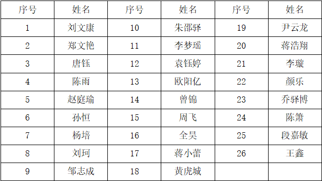 根据《中国共产党章程》、《中国共产党发展党员工作细则》及《伟德国际victor1946发展党员工作实施细则(试行)》的规定,学生党支部确定刘文康、文韬等56位学生为入党积极分子,现予公示,征求党员、群众和单位的意见。公示期限内,个人和单位均可通过来信、来电、来访等形式,向学院基层党委举报反映公示对象在德、能、勤、绩、廉等方面的情况和问题。以个人名义举办反馈的应署本人真实姓名和联系方式;以单位名义举报反映的应加盖单位印章。举报反映公示对象的情况和问题必须真实准确,内容尽量具体详细,并尽可能提供相关调查线索。受理单位对举报人的情况严格保密。公示对象名单和基本情况如下: