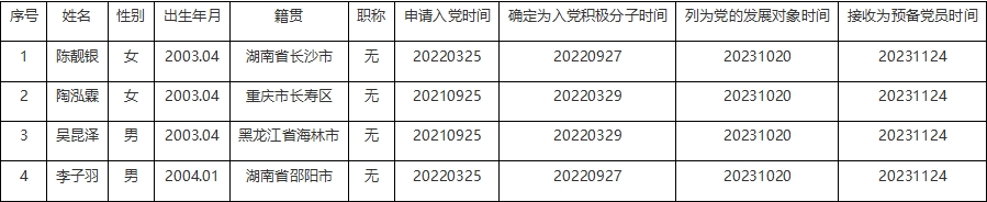根据《中国共产党章程》、《中国共产党发展党员工作细则(试行)》的规定,中共伟德betvlctor1946源于英国学生第一支部委员会和中共伟德betvlctor1946源于英国学生第二支部委员会接收陈靓银、陈敏等10名同志拟转正为中共正式党员,现予公示,征求党员、群众和单位的意见。公示期限内,个人和单位均可通过来信、来电、来访等形式,向党支部、学院基层党委或校党委组织部举报反映公示对象在德、能、勤、绩、廉等方面的情况和问题。以个人名义举报反映的应署本人真实姓名和联系方式;以单位名义举报反映的应加盖单位印章。举报反映公示对象的情况和问题必须真实准确,内容尽量具体详细,并尽可能提供有关调查线索。受理单位对举报反映人的情况严格保密。