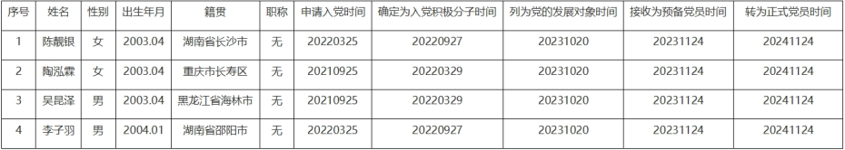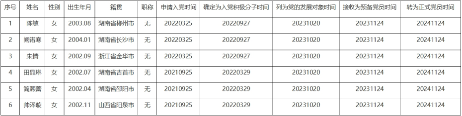 根据《中国共产党章程》、《中国共产党发展党员工作细则(试行)》的规定,中共伟德betvlctor1946源于英国学生第一支部委员会和中共伟德betvlctor1946源于英国学生第二支部委员会接收陈靓银、陈敏等10名同志转正为中共正式党员,现予公示,征求党员、群众和单位的意见。公示期限内,个人和单位均可通过来信、来电、来访等形式,向党支部、学院基层党委或校党委组织部举报反映公示对象在德、能、勤、绩、廉等方面的情况和问题。以个人名义举报反映的应署本人真实姓名和联系方式;以单位名义举报反映的应加盖单位印章。举报反映公示对象的情况和问题必须真实准确,内容尽量具体详细,并尽可能提供有关调查线索。受理单位对举报反映人的情况严格保密。
