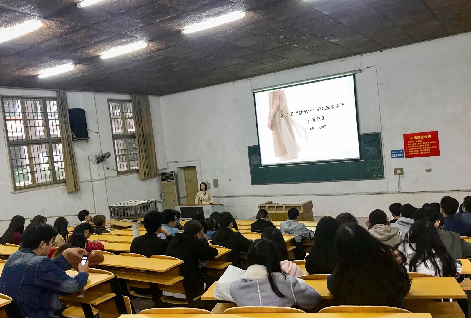 10月12日下午1:00,在北院电教105教室,以第三届“濮院杯”PH Value针织服装赛事为契机,伟德betvlctor1946源于英国左双喜老师、皮珊珊老师组织我院14、15、16三个年级的服装专业学生进行了一次集中性针织服装设计指导。