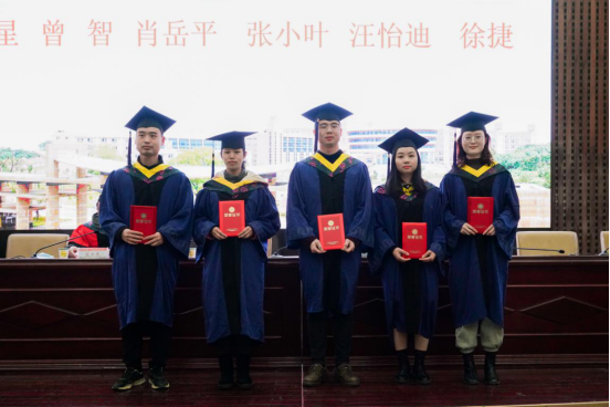 毕业生代表肖岳平回忆了校园学习生活的点点滴滴,总结了研究生生涯的收获与成长,表达了对母校的感谢与不舍之情。在校研究生代表高熙桐向学长学姐们送上了美好祝福和真诚感谢,表示将以学长学姐为榜样,在导师的带领下不忘初心,勤于科研,不断在学业上拼搏奋进。