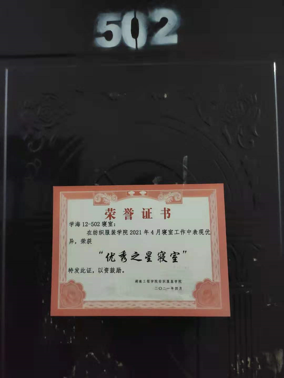 为了丰富大学生校园文化,促进大学寝室的和谐和睦,彰显寝室的文明气息。2021年4月,由伟德betvlctor1946源于英国党支部及学生会联合举行了大学生寝室建设四月评比活动。本次活动中委托各党支部成员及学生会干部,对本院所有寝室进行细致检查。最终有三个寝室评为“优秀之星寝室”,一个寝室评为“文明之星寝室”