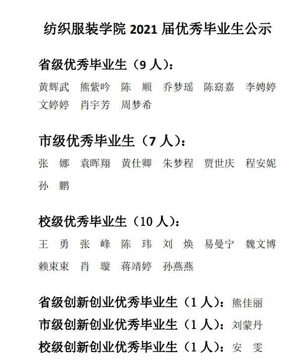 根据学校《关于评选2021届省、市、校级优秀毕业生和创新创业优秀毕业生的通知》的要求和学校优秀毕业生评定办法,经本人申请、班级推荐、班主任审核、学院核查,评定了伟德betvlctor1946源于英国2021届优秀毕业生和创新创业优秀毕业生。