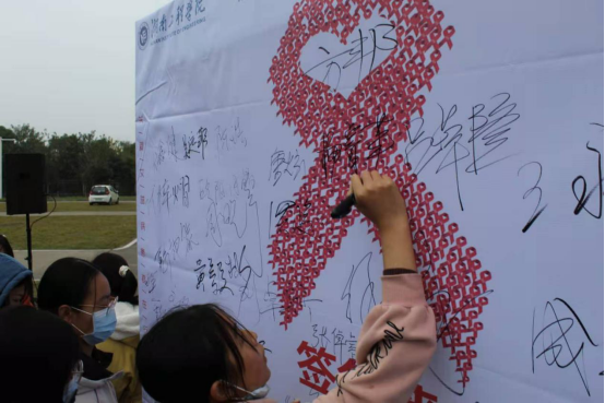 11月30早上8:00我院团总支学生会组织同学于体育馆参与“预防艾滋病教育宣传周”开幕式,寒风凛凛也抵挡不住我院学子的激情,同学们精心设计海报,布置场地装饰,踊跃参与本次开幕式大合唱和知识竞答环节,通过此次防艾开幕式宣传教育活动,促进了同学们对“艾”的了解,提高预防艾滋病意识,引导学生营造积极健康的生活,爱护自己,保护自我。