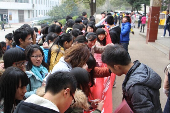 首先,唐星星老师从各个方面讲述了期末考试的重要性,针对历年大一、大二、大三同学在期考中挂科率不断上升的现象,对大家提出了新的要求。并强调了考前复习的重要性,希望同学们增强紧迫感,放下手中的手机,关闭宿舍的电脑,积极投入到期末考试的复习中来。对所学的知识进行归纳整理,做到融会贯通,举一反三。不要只想着作弊、代考。鼓励同学们采用科学高效的复习方法,并预祝大家在期末中取得良好的成绩。实现同学们的“零”挂科梦想。接着,学生会主席陈巍学长带领着大家进行了考前宣誓:“在今后的期末复习备考中,放下手机,拿起课本,不玩游戏,不看影视片,专注学习,以分数来论证我的付出,用激情和汗水,证明我能行,期末零挂科,我能行。”誓言响彻学海花园,鼓舞人心,催人奋进。随后组织大家有序的在横幅上签名,大会进入尾声。