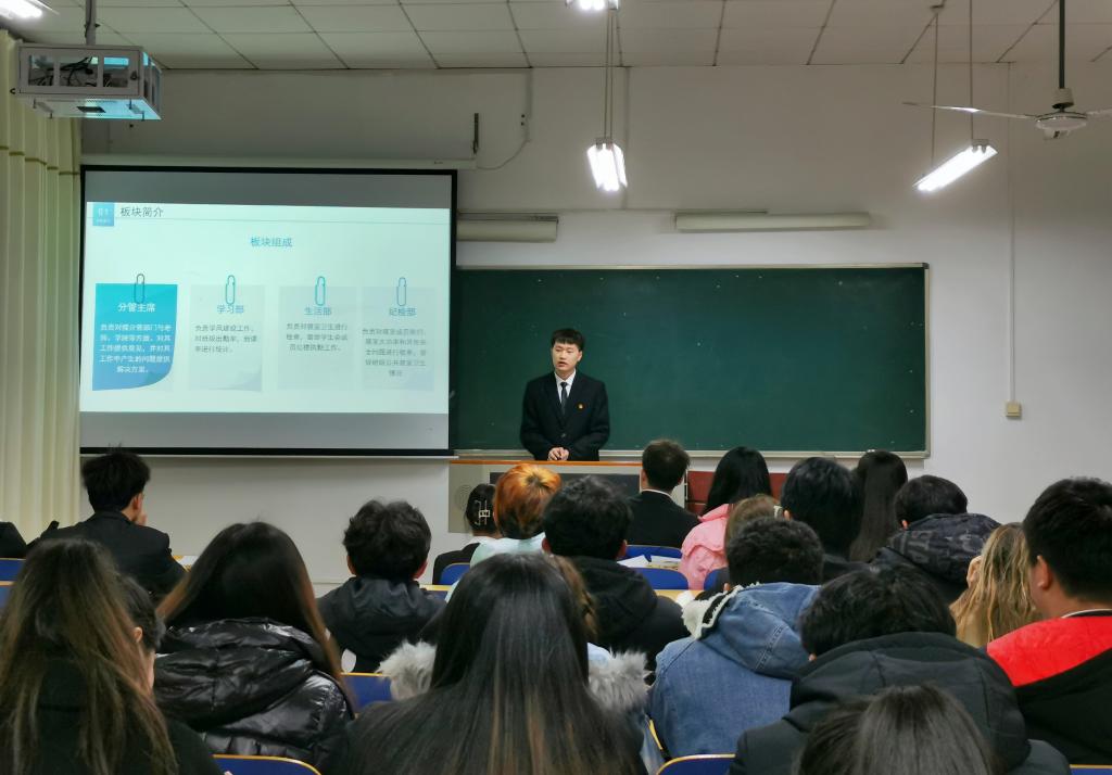 最后学生会主席胡拓宇对学生会上半学年各项工作进行总结,并表达了对上半年工作成果的肯定,以及对学生会成员的希冀与鼓励。同时,也指出工作中存在的一些问题和不足,他强调,部门成员之间要增强沟通与交流,随时了解,及时反馈。