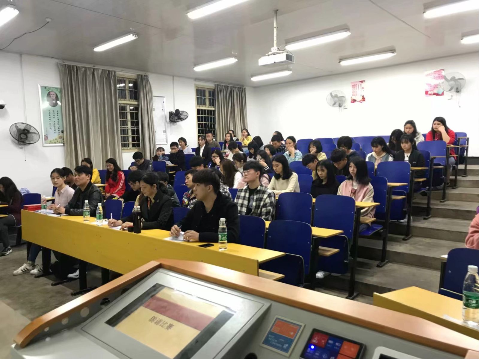 活动期间,同学们按照抽签顺序依次上台朗诵所选文章。他们举止大方、精神饱满,朗诵富有深情,较好的展现了当代大学生的青春风采。选手们围绕“青春”、“父与子”、“我愿是激流”等名篇深情朗诵与表演,不断把活动现场氛围推向高潮。同时,根据选手们的朗诵情况,评委老师依次进行了点评。黄自力希望同学们借此机会相互学习、相互交流,不断提高,共同营造良好的读书氛围。
