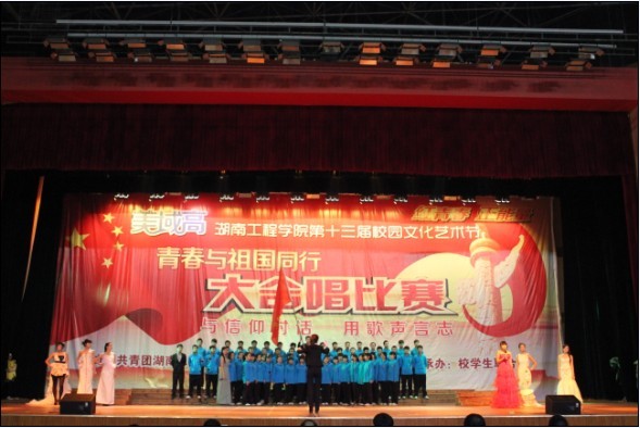 11月24日晚上8:00,第十三届校园文化艺术节“青春与祖国同行”大合唱比赛在体育馆拉开帷幕。参赛大合唱院系分为甲、乙两组。伟德betvlctor1946源于英国合唱歌曲“走向复兴”在此次大赛中大放异彩,荣获乙组第二名。