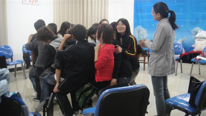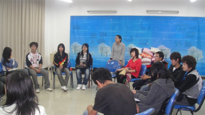 唐老师介绍,10月份是我校的心理健康活动月,今年的主题是“行动起来,促进精神健康”。为了提高我院学生的心理健康水平,广大心理干部要提高自心理素质,自助助人。特别是季节交换、气候变化急剧时节,流感会引起同学们身体不适,也会给一些心理脆弱同学带来困扰,引起心理恐慌。主要表现为怀疑自己或他人为流感患者、过分积极打探病情、对周围的同学产生严重的防备心理等等。唐老师强调,为了全院同学的身心健康,各班心理委员及心理部干事一定要关注此类同学,及时将班级情况上报给学院。所有参与人员在唐老师的组织下参加了几个团体心理游戏,在大家的积极互动下,每个人都感受到了在一个相互信任团队里成长的乐趣、明白了健康心态在生活学习中的重要性、收获了自助助人的喜悦。最后,大家还亲身体验了心理宣泄室里各种设施、设备的功能与功用,还意犹未尽地表示,这是我们学校除图书馆外的另一宝库,一定要好好利用它,以期促进我们身心健康。