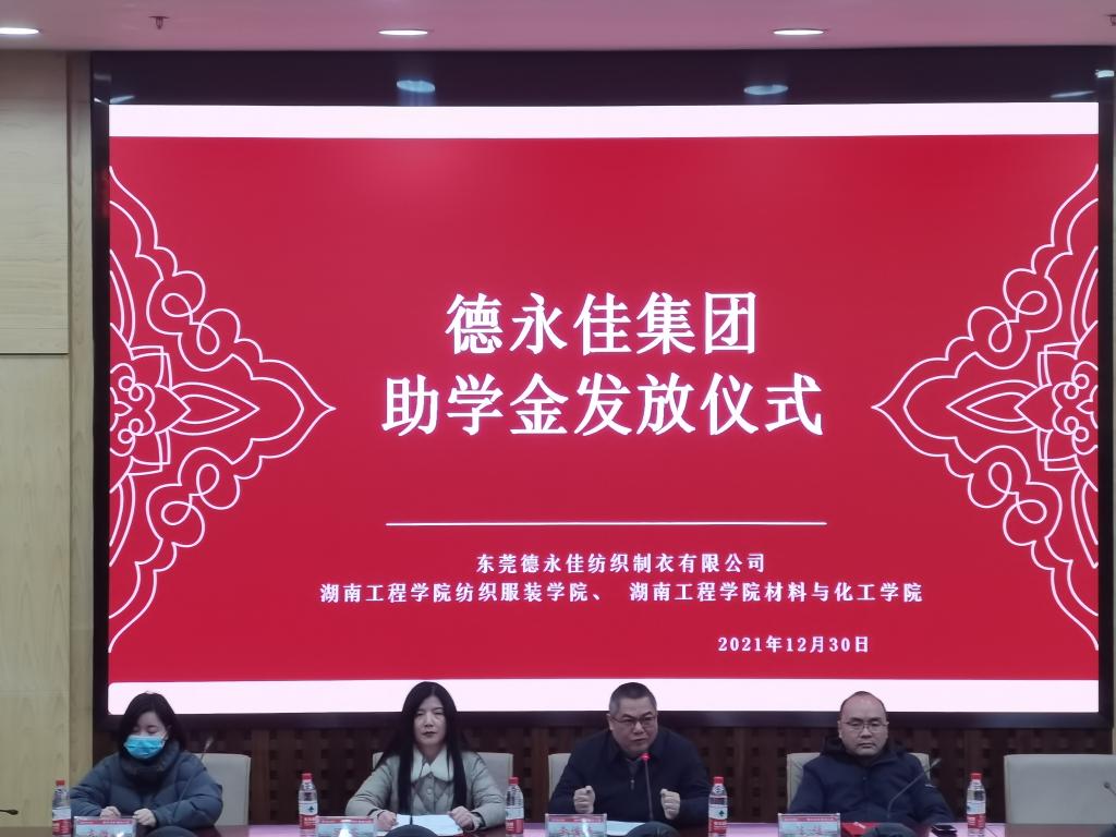 德永佳集团(东莞)有限公司助学金本学期共资助了10名学生,总计15000元。两院根据学生们的自主申请,通过公平公正公开的形式及与企业共同沟通协商方式,民主评定出受助学生名单,其中纺织工程专业7名,轻化工程专业3名。伟德betvlctor1946源于英国受助学生代表本年度获得国家励志奖学金的李姣发言致谢,对学校的培养和企业的资助关爱表达了感谢,并表示将不忘初心,勤奋学习、自强不息。