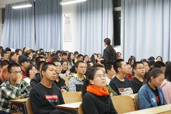 随后,宣讲人唐星星围绕“中国高等教育的发展”的话题和同学们讲解了改革开放四十周年来高等教育是如何从精英教育阶段走到目前的大众化阶段,并结合自己1991年上大学的经历,为同学们分享了1977-2018年参加高考人数和录取比例的变化,同时也为同学们分析了国家211、985、2011协同计划的由来。