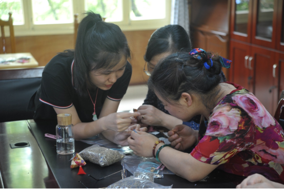 在艾香弥漫的活动现场,大家欢声笑语,一起探讨,既锻炼了动手能力,又学习了传统文化,一批造型可爱、五彩缤纷的香包相继出炉,大家互相展示,互相欣赏,其乐融融,诉说着对家人的祝福和祈祷。“没想到我也能做出这么漂亮的香包,原来香包里可以添加这么多艾叶和薰衣草,让我对端午文化有了新的认识,也进一步理解了中国传统文化的奥妙与精深。”材料与化工学院副院长陈建芳激动的说道。
