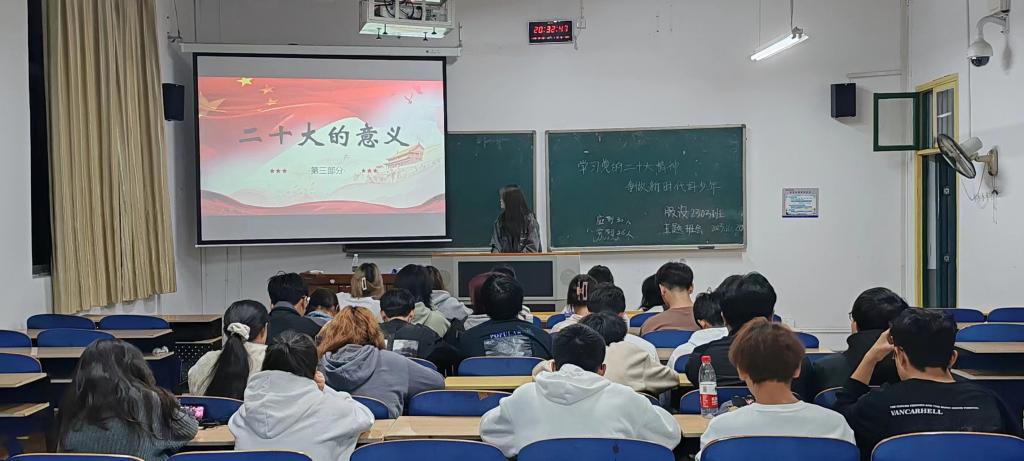 主题班会上,各班按照班会要求通过PPT和播放视频等形式,组织同学们学习了党的二十大报告、新修订的《中国共产党章程》等文件,加强了同学们对二十大报告中的新表述、新论断的理解,教育引导学生在奋进新征程路上全面贯彻习近平新时代中国特色社会主义思想,勇做走在时代前列的奋进者、开拓者、奉献者。班会上同学们积极互动,踊跃发言,纷纷表示,作为新时代的青年,要坚定不移跟党走,勇担时代重任,努力学习、砥砺奋进,以实际行动为党和国家贡献青春力量。
