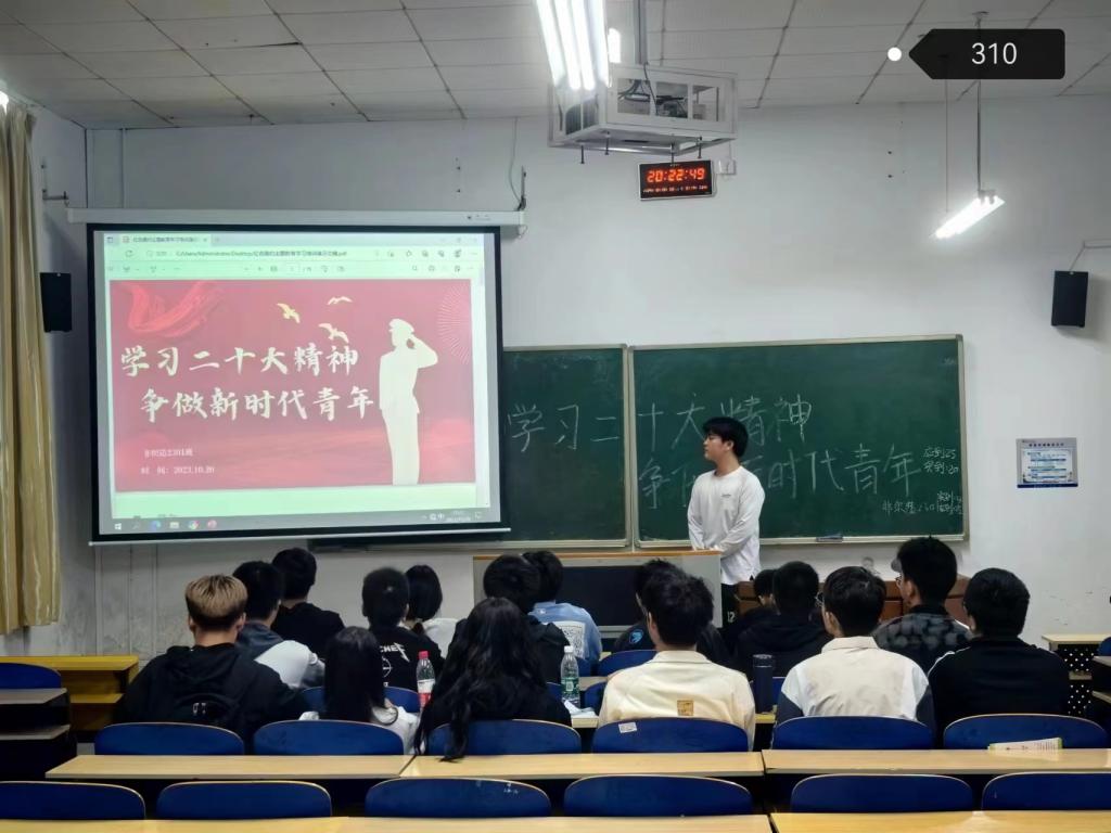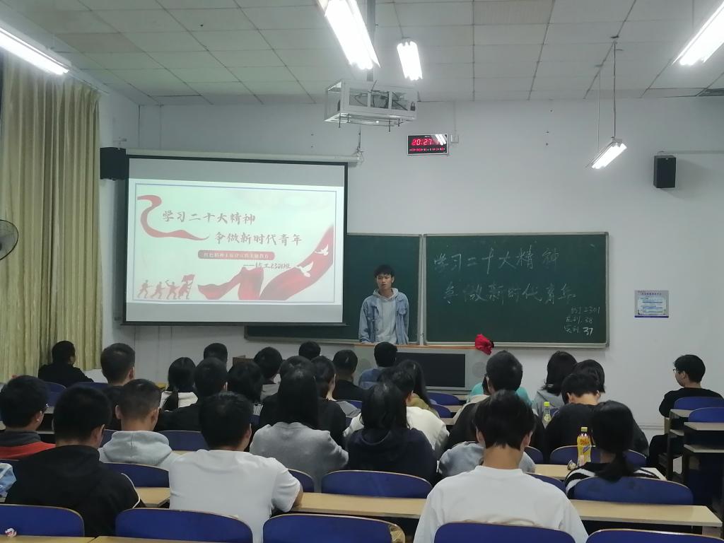 为深入学习党的二十大精神,引导同学们踔厉奋发,勇毅前行。伟德betvlctor1946源于英国于2023年10月20日晚,组织2023级同学于红楼集中开展了“学习二十大精神,争做新时代青年”主题班会。