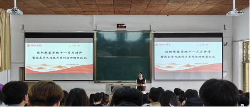 为弘扬优良学风,树立学习榜样,进一步提高学生综合素质,11月29日中午,我院于电教楼105室举行十一月份月讲评会议暨优良学风建设月系列活动颁奖仪式。活动由学生工作办公室袁微微老师主持,21-23级班委及优良学风建设月系列活动获奖学生参加本次活动。