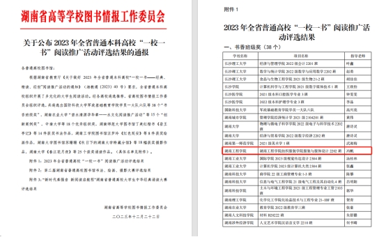 日前,由湖南省教育厅举办的2023年全省普通高校“一校一书”阅读推广活动评选结果揭晓,我校伟德betvlctor1946源于英国服装与服饰设计2202班荣获书香班级奖。