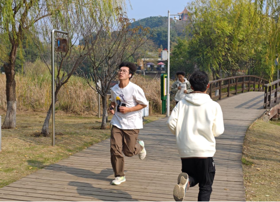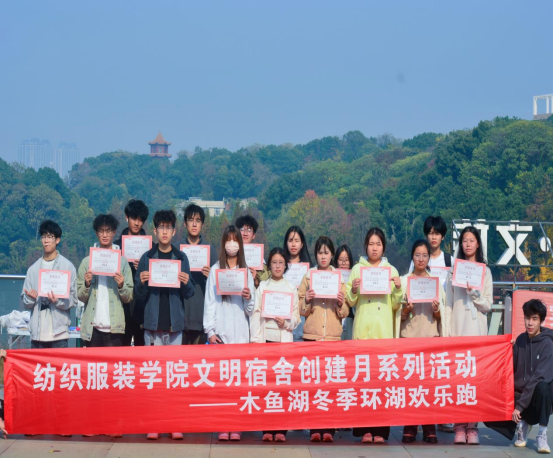 风和日丽,气候宜人,整装待发的同学们摩拳擦掌,准备释放热情。根据活动规则,所有选手要按规定路线围绕木鱼湖跑一圈。赛道两旁随处可见积极热情的志愿者们忙碌的身影,他们在道路边摆放桌椅帐篷,为参赛选手提供路线提醒、饮用水等服务。辅导员龚旭昱讲解完比赛流程后,随着一声哨响,活动正式开始。同学们迎着冬日暖阳,踏着欢快的脚步,你追我赶,一路欢歌笑语,兴致盎然,享受着阳光,顺畅了心情,感受到健身跑带来的激情活力。同学们阔步向前、英姿飒爽的身影和爽朗的笑声吸引了众多木鱼湖游客的眼光,成为了冬日里一道亮丽的风景线。最后,来自纺织工程2404班的钱存和服装与服饰设计2403班的景娅茹同学分别获得男、女组冠军。