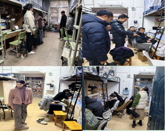 过程中,老师们不仅仔细检查了学生的内务整理情况,还亲切询问了学生的生活近况,了解学生对迎评工作的知晓度,同时进行了学生宿舍相关用电安全教育,对学生搞好个人卫生和集体卫生以及提高安全意识都起到了督促作用。