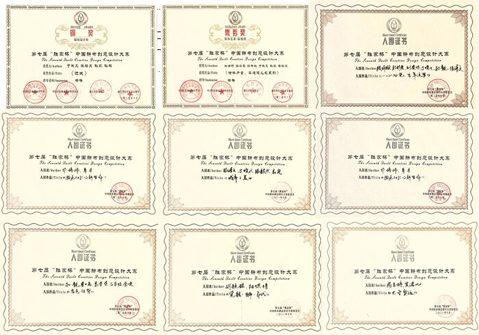 本次大赛的部分获奖作品证书