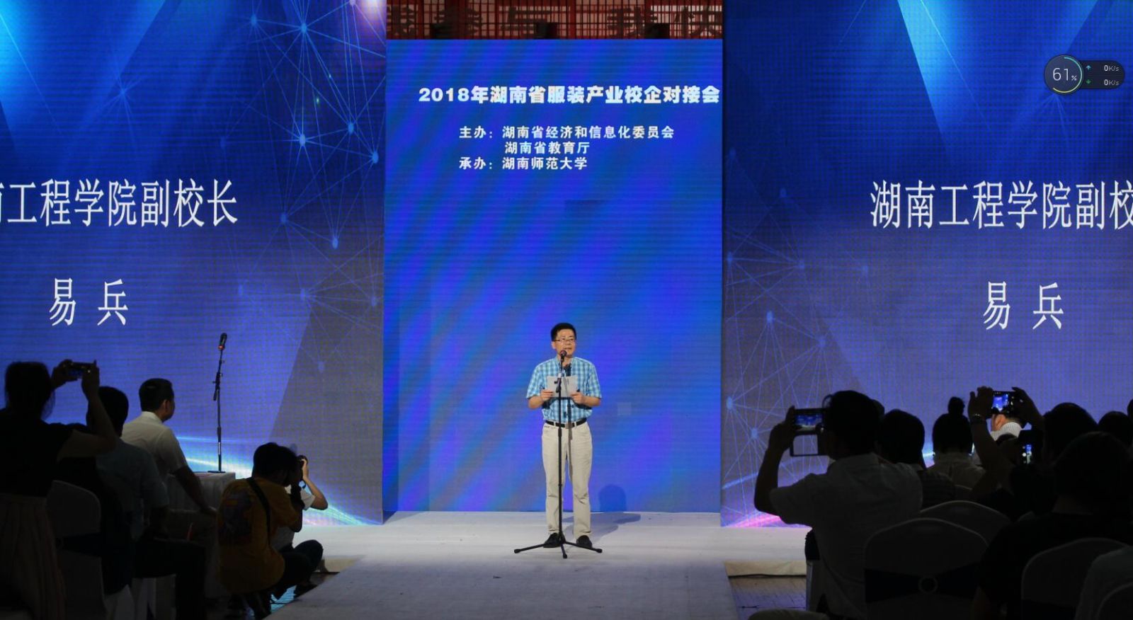 我校易兵副校长在本次服装产业校企对接会上代表湖南服装类高校做重点发言,他指出将继续发挥高校的人才培养和科学研究的优势,把办学思路真正转到服务湖南地方经济社会发展上来,转到产教融合校企合作上来,转到切实培养工程应用型人才上来,转到增强学生就业创业能力上来,全面提高学校服务区域经济社会发展和创新驱动发展的能力。
