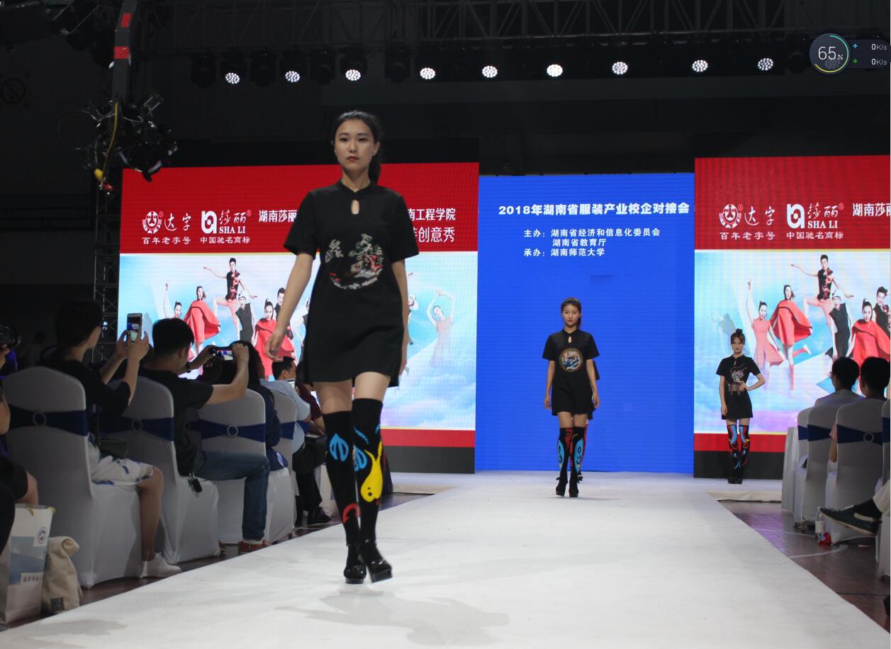 对接会上集中展出了伟德国际victor1946与湖南莎丽袜业公司等4组校企合作成果,由我校服装设计与表演专业的学生动态展示了我校与湖南丽莎袜业联合研究的配饰袜品设计、湖南旭荣制衣有限公司合作推出的学院风运动服系列设计作品,内容形式新颖,引起与会代表的热心关注和高度肯定。我校服装设计专业自创办以来,一直以培养具有创新精神的高素质服装行业应用型人才为重任,秉承立足湖南服饰文化,服务区域经济建设,积极探索产教融合新模式。在此次对接会中的召开将进一步推进产业集聚发展、深化产学研合作、实现产教双赢,有效促进服装设计专业教育的改革和发展。