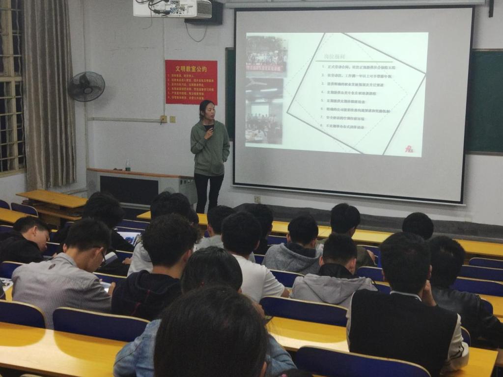 10月18日晚7:00,特大纺织品(深圳)有限公司招聘宣讲会在纺织服装学院电教101会议室召开。我院众多优秀应届毕业生参加了此次招聘宣讲会。