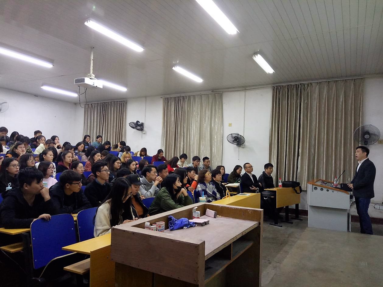 随后,联系自身经历,他讲述了在校大学生如何看待今天的就业形势、引导学生应该如何了解自己的专业、学会正确分析自己的长处与短处、针对就业形势如何转变就业观念等,并向同学们分享了步入职场的经验以及如何在职场上做到游刃有余。