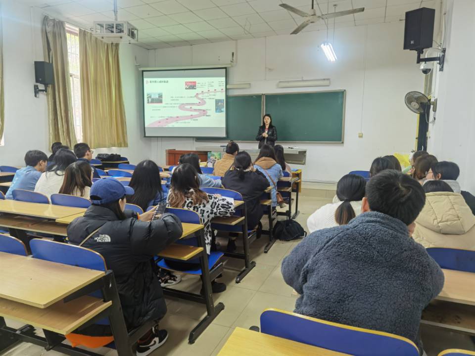 宣讲会伊始,主讲人像同学们展示了该公司的创立背景和发展历程,并让同学们了解到该公司的工作环境、工作氛围、招聘岗位及相关专业需求。