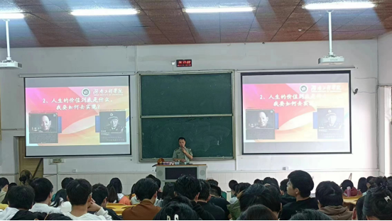 刘宸均通过视频及案例向同学们展示了我国在航天科技、军事技术和国防力量等方面的突出成就。随后,他从“大学生高质量就业是什么,与我有什么关系,要如何实现?”“人生的价值到底是什么,要如何去体现?”“大学生到底能给国家和社会做些什么?”三个方面,分析讲述了参军入伍的重大意义,激发了同学们参军入伍热情。最后,刘宸均以我校入伍毕业生的优秀事迹为例,系统讲解了大学毕业生入伍的优待政策,鼓励同学们积极投身国家强军兴军的伟大事业。