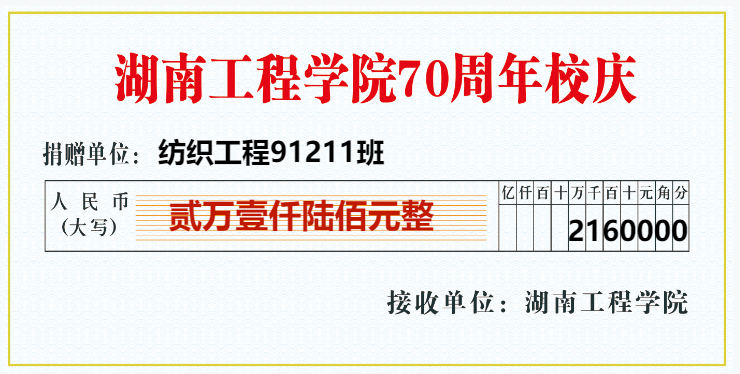 七十年春风化雨,七十年弦歌不辍,值此伟德国际victor194670周年建校之际,纺织工程91211班的同学们为母校捐赠19800元定向用于纺织服装大楼时尚传播与视觉形象实验室建设,并献上了最深情的祝福。