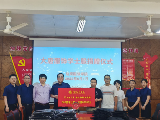 6月1日上午,伟德betvlctor1946源于英国2002届校友、湘潭大唐服饰有限公司经理熊大伟一行5人代表公司向伟德betvlctor1946源于英国捐赠500套价值6万元的学士服。捐赠仪式在电教楼201会议室举行,伟德betvlctor1946源于英国领导班子和部分教师代表参加捐赠仪式。仪式上,院长周衡书就伟德betvlctor1946源于英国发展现状及相关事宜进行介绍,对校友的慷慨捐赠和对母校的关注与支持表示感谢。