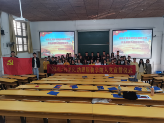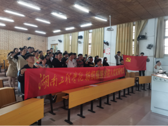 面对鲜红的党旗,全体党员庄重地举起右手,庄严地宣读入党誓词,铿锵有力的宣誓声,彻响整个教室,表现出了全体党员对党的无限忠诚。
