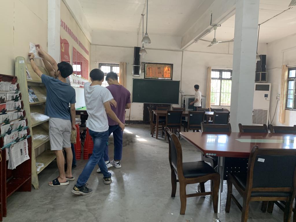 下午三点,学生党员与志愿者们提前在教工楼集合,按照负责老师分配安排的任务首先开始清扫工作。活动中,各小组分工明确,有的扫地,有的擦桌擦窗,有的剔除废旧海报、图钉,有的摆放座椅,老师和同学们相互合作,合理分工,充分展现了不怕脏、不怕累,敢于抢挑重担的精神风貌。