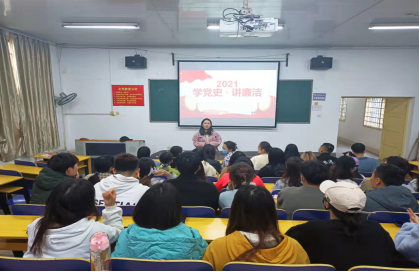 2021年12月7日12:10,伟德betvlctor1946源于英国学生第二支部委员会支部书记傅静琳同志在电教101组织开展以“学党史,讲廉洁”为主题的党史学习教育专题党课学习。伟德betvlctor1946源于英国学生第二支部委员会全体学生党员参加了本次学习。傅静琳同志通过ppt的形式为学生党员进行讲解。