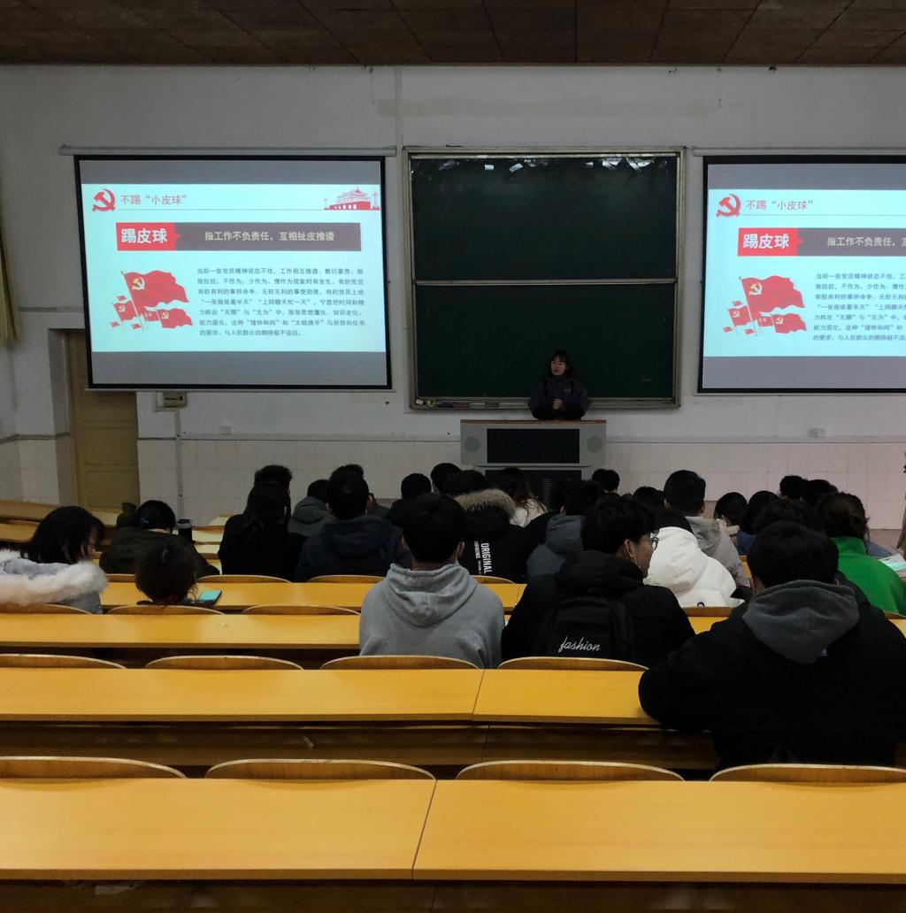 12月12日18:00伟德betvlctor1946源于英国学生第二党支部书记傅静琳,在电教105开展做合格党员须着眼小处主题党课,党课内容分为六个部分,分别为不传“小消息”,不拉“小圈子”,不收“小意思”,不占“小便宜”,不踢“小皮球”,不搞“小动作”。这六个“不”字再次强调了作为一名合格的党员就要耐得住寂寞、经得住物质诱惑、守得住清贫,甘愿带头坐冷板凳,而且要把冷板凳坐热。同时,“坐冷板凳”并非苦恼苦熬,不是得过且过,而是不记个人得失,以奉献为宗旨、以发展为已任,不断书写自身本领的新高度,这才是一个合格党员所应具备的自身素质、业务素质、政治素质。