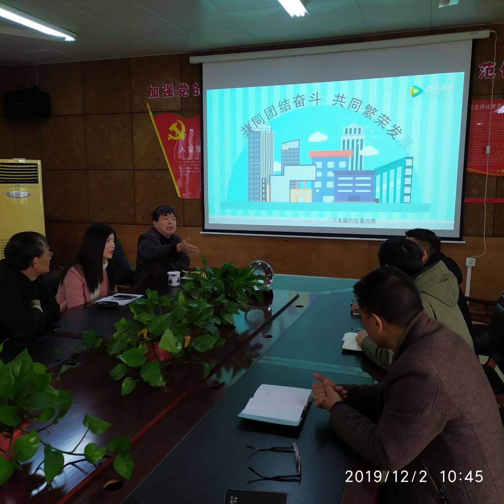 全体与会人员观看了十九届四中全会视频,党的十九届四中全会是在新中国成立70周年之际、在“两个一百年”奋斗目标历史交汇点上,召开的一次具有开创性、里程碑意义的重要会议。全会审议通过的《中共中央关于坚持和完善中国特色社会主义制度、推进国家治理体系和治理能力现代化若干重大问题的决定》,为坚定制度自信、实现伟大梦想提供了根本遵循、指明了正确方向。