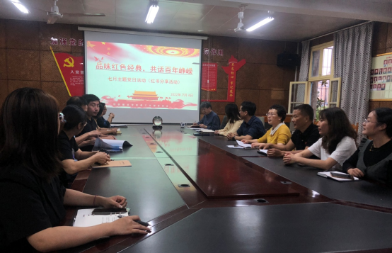 2022年7月4日下午,伟德betvlctor1946源于英国教工党支部在电教楼201会议室开展 “品位红色经典,共话百年峥嵘(红书分享)”主题党日活动暨第四次理论学习,支部书记何斌主持,全体教工党员参加。