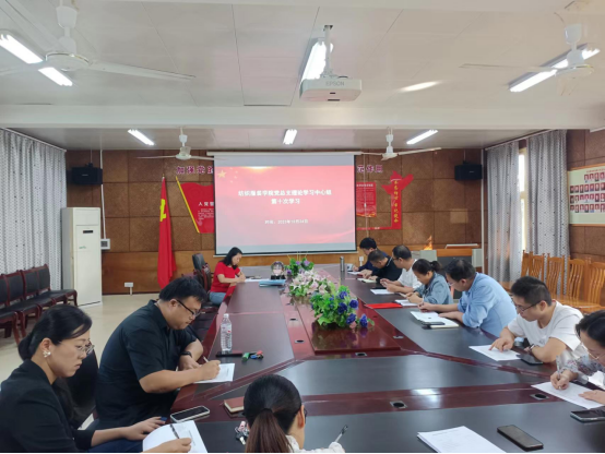 10月24日下午,我院党总支理论学习中心组在电教楼201会议室举行2023年第十次学习(扩大)会议。党总支书记李爱国主持会议,理论学习中心组成员、无党派人士代表和骨干教师代表参加会议。