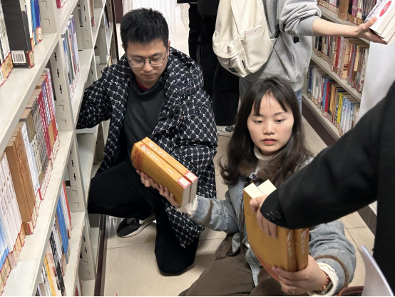 本次活动在图书馆老师们的指导下开展,学生分成两组分别赴图书馆205室和407室,将混乱无序的图书按照英文字母编号进行分类、搬运、整理。在分类过程中,遇到漏的书本,大家积极寻找对应的书架,交与相关负责的同志。同学们以激情饱满的态度充分发挥团结协作精神投入到实践中,经过两小时的耐心细致的工作,大家顺利并准确的完成了书本核对、归类、上架、下架等工作。