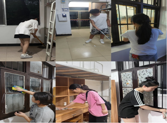 为保证清扫工作高效有序开展,所有成员分工明确、密切配合,高效率高质量地完成每一项任务,将志愿奉献精神展现得淋漓尽致,充分发挥不怕脏、不怕累的精神,通力协作,将宿舍内外进行全面细的清洁行动,辛勤打扫,尽职尽责,不放过一个角落,不留下一丝灰尘,擦拭桌椅、去除污渍,不放过任何卫生死角。同时,对阳台厕所水龙头、电灯开关、空调遥控器等硬件设施进行逐一排查,发现问题及时汇总报修。充分发挥学生党员的服务意识,让新生宿舍焕然一新。