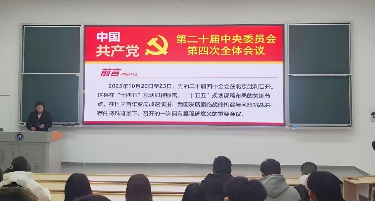 学生第二党支部书记谭小明以专题党课形式领学,聚焦党的二十届四中全会核心内容,从“高质量发展”“科技自立自强” 等关键词切入,深入解读全会关于教育强国、人才强国战略的重要论述。集中学习环节,学生党员围绕党的二十届四中全会精神内容学习,激励党员干部主动担当、积极作为,始终同党中央保持高度一致,号召大家将个人成长融入国家发展大局。内容层层递进,既有理论高度,又有实践指导意义。