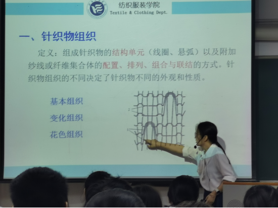 2023年9月27日,伟德betvlctor1946源于英国院长周衡书带领学院教学督导团对纺织学院专任新进教师李会改主讲的《针织学1》课程进行听课看课。
