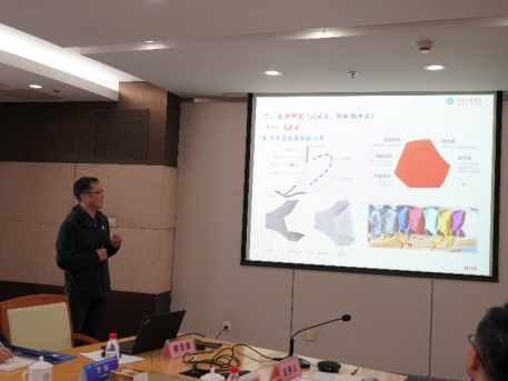 汪泽幸教授在大会分论上作了题为“聚酰亚胺(PI)纳米纤维膜在个体防护领域的应用研究”的专题报告,重点介绍了静电纺丝聚酰亚胺纳米纤维膜、纤维膜的性能,在过滤类(可重复洗涤防护口罩、可重复使用医用防护复合面料、特殊领域用生物防护复合面料、透气型高等级洁净室用防护服面料)、保暖/隔热类领域的应用研究,以及聚酰亚胺纳米纤维膜应用的难点。引起了参会代表们的浓厚兴趣。汪教授也盛情邀请行业专家来我校进行学术交流和产学研合作,进一步提升学院科研水平及服务行业的能力,此次汪教授的专题汇报为我校在纺织领域行业内提升了一定的知名度。