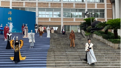 “锦绣”作品展不仅仅是一次教学活动,更是我校服装与服饰设计专业、表演专业四年学生培养达成度的检验,服装毕业设计作品,充分展示“世界时尚在东方”的自信,将湖湘服饰文化挖掘,无论是扎染蜡染、手工刺绣、织锦、民族服饰艺术,做了很好的创新创意,响应了民族文化复兴的大主题,也充分展示了我校服装与服饰设省级一流专业的人才培养实力。服装作品展示不再局限于密闭空间、T形台上镁光灯下、固定场景、固定节奏,而是利用宏大的自然空间,无限变数环境下的变频表演,充分展现了我校表演专业培养人才的适应性,可塑性。